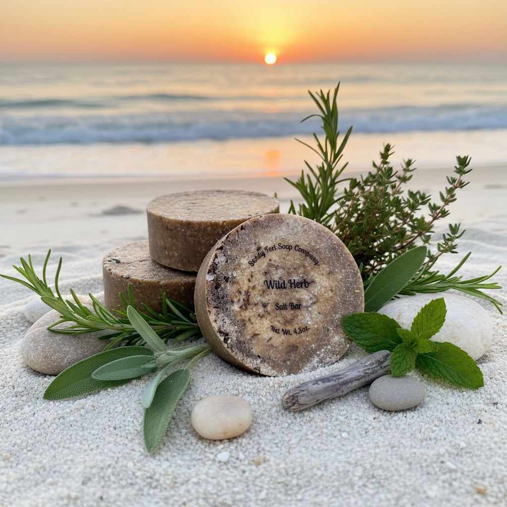 Ingredients: coconut oil, fine sea salt, distilled water, sodium hydroxide, shea butter, rosemary essential oil, lavender essential oil, peppermint essential oil, tea tree essential oil, spirulina powder, rosemary leaves, and spearmint leaves.